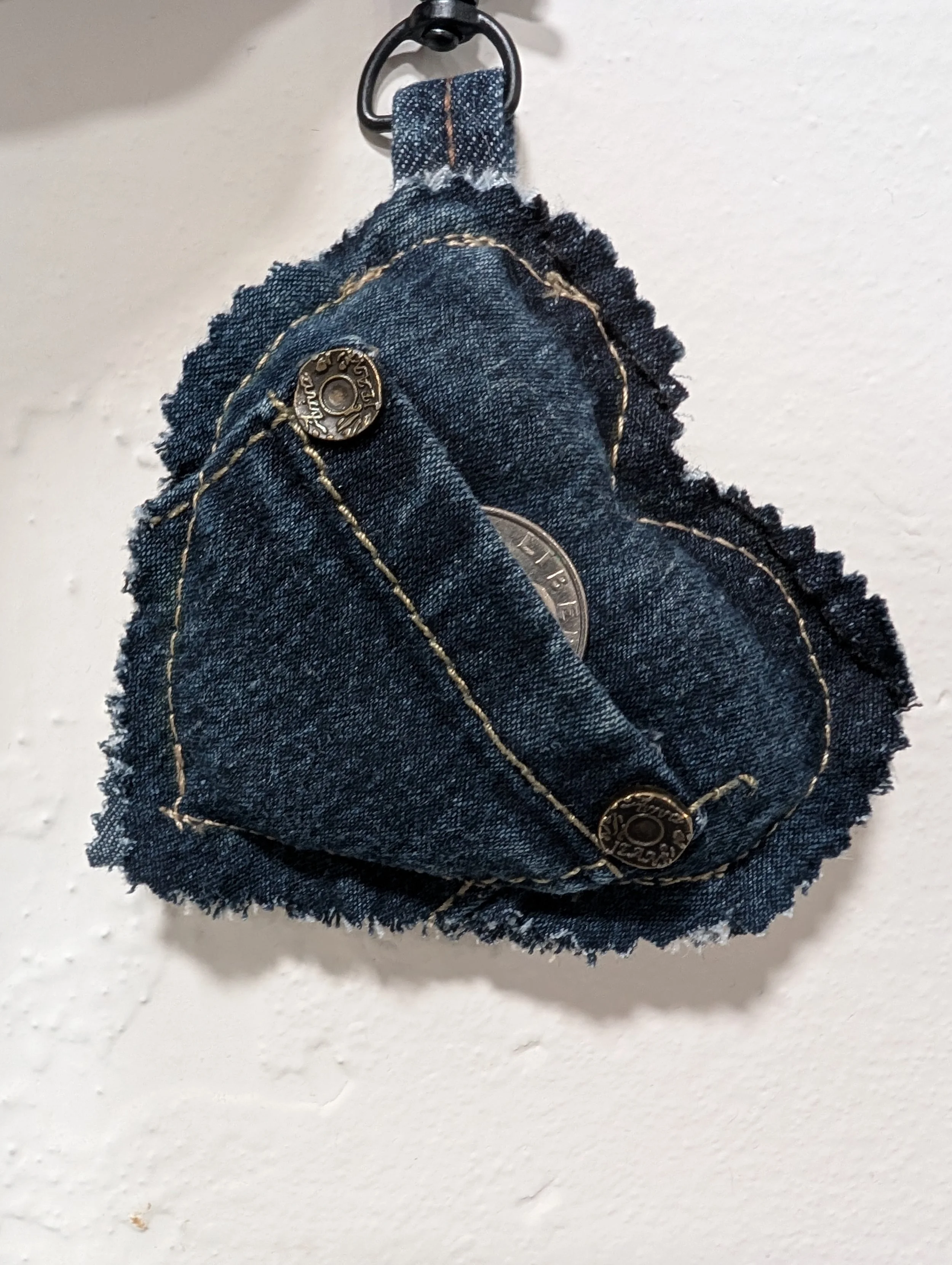 Never get stuck at Aldi without a quarter again! This handmade heart keychain is designed to keep your Aldi cart coin handy at all times. Made from 99% upcycled materials, each heart is truly one-of-a-kind.